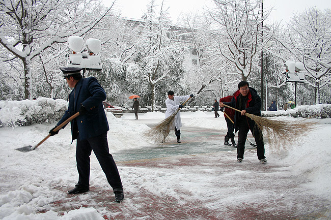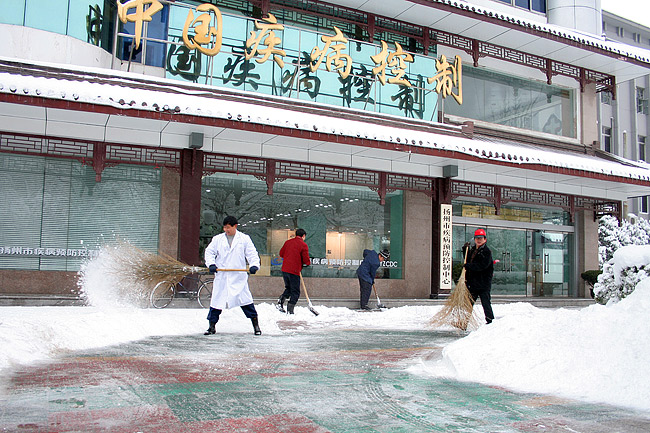 我市近日连降暴雪,给居民生活出行带来巨大不便。为确保人民群众出行方便、交通安全、畅通无阻。26日,扬州市政府发出紧急通知,通过市电视台打出滚动字幕,部署做好防冻安全工作。中心领导积极响应,做出安排。28日一大早,在办公室何日同志的带领下,中心各部门员工奋力清扫附近路段的积雪,保证道路畅通。目前中心各项服务秩序井然,来往人员行走交通未受影响。